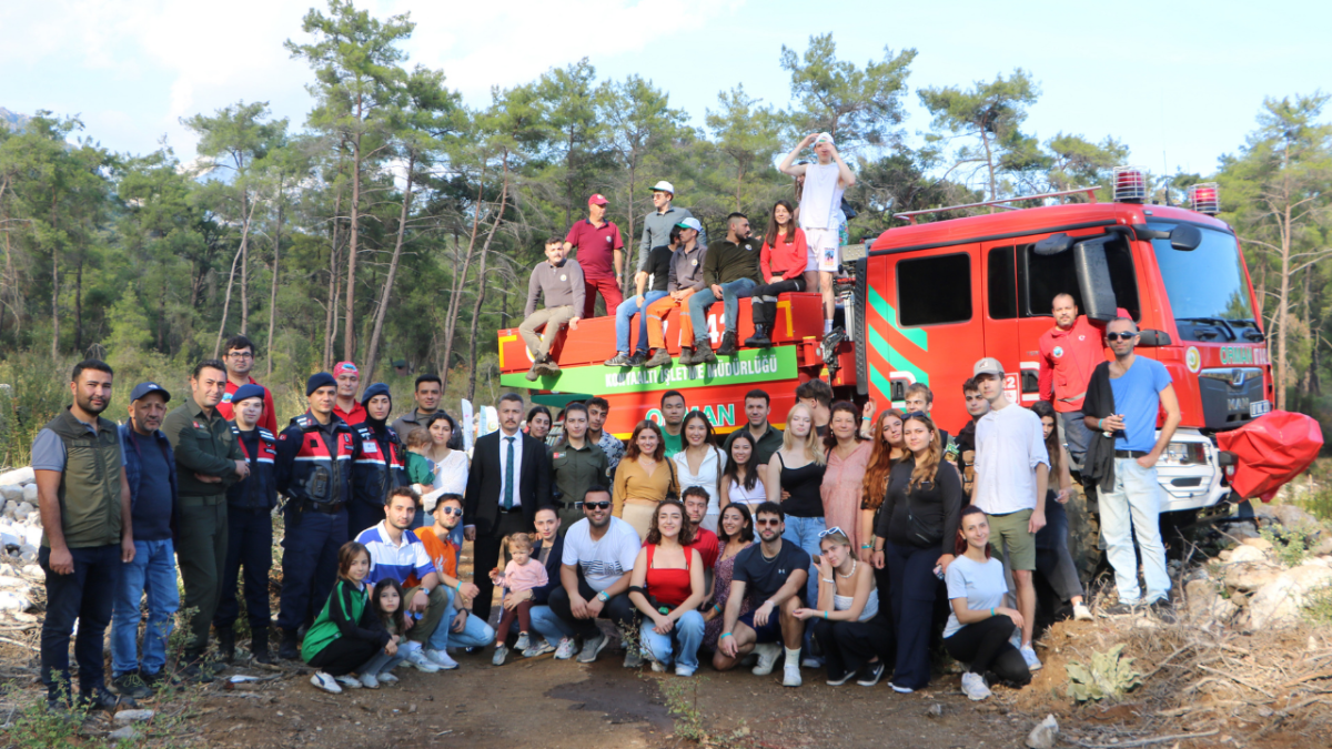 haberimizvar.net- Etkinlik kapsamında Türkiye, İtalya, Bulgaristan, Yunanistan, Letonya, Romonya'dan gençler Kemer ilçesine geldi. Bir haftalık etkinlikte gençlere orman yangınına müdahale yöntemleri uygulamalı gösterildi. Tatbikatta senaryo gereği yakılan ateşi, orman işletme şefliği ekipleri söndürdü, gençler de çalışmaları takip etti. Kemer Orman İşletme Şefliği ekipleriyle gençler, orman yangınında zarar gören alanlarda fidan dikti.