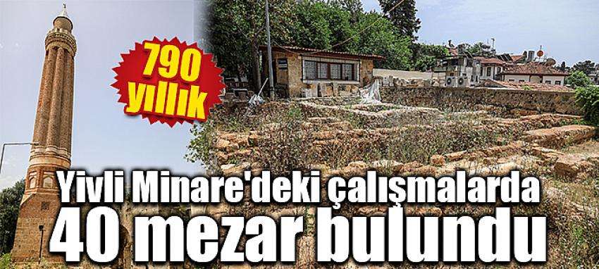 Antalya'da, UNESCO Dünya Mirası Geçici Listesi'ne alınan 790 yıllık Yivli Minare'de süren kazı çalışmaları sırasında 40 yeni mezar bulundu. Antalya Vakıflar Bölge Müdürü Hüseyin Coşar, düzenlemelerin ardından bölgeyi arkeopark gibi ziyarete açacaklarını söyledi.