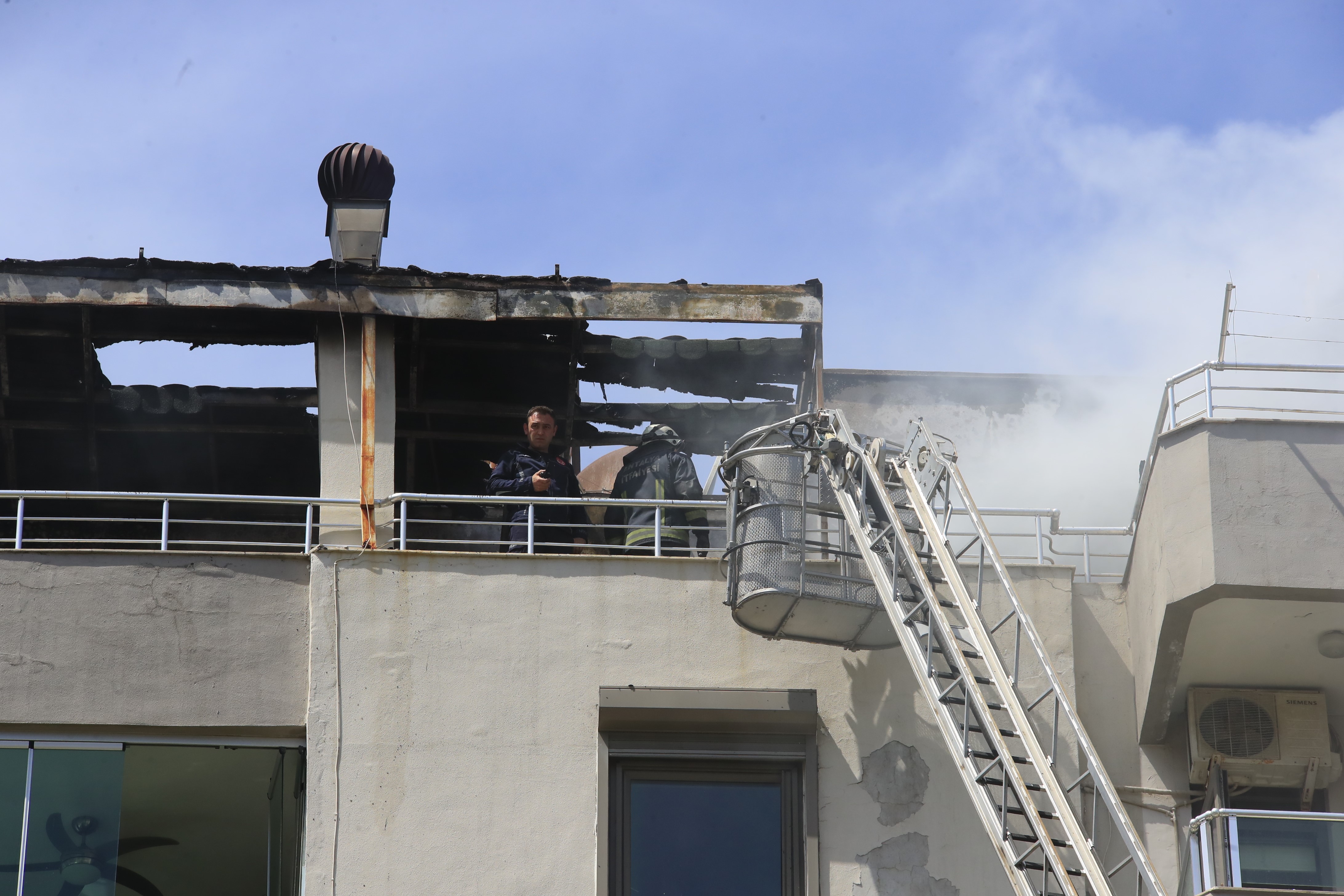 İhbar üzerine olay yerine Antalya Büyükşehir Belediyesi İtfaiye Daire Başkanlığı ekipleri ile emniyet güçleri sevk edildi. Kısa sürede adrese ulaşan ekipler, yangına hem apartman dışından 30 metrelik merdivenli araçla hem de daire içinden müdahale etti. İtfaiye ekiplerinin müdahalesiyle alevler dakikalar içinde kontrol altına alınarak söndürüldü. Çıkan yangında dubleks dairenin teras katında büyük çapta hasar meydana geldi. Yangın sırasında sitede oturan vatandaşlar paniğe kapılarak apartmandan aşağı inerken, ev sahiplerinin de yangından son anda haberdar olduğu belirtildi.