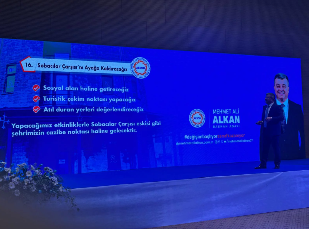 AESOB’un 1 Mayıs’ta yapılacak genel kurulu öncesi adaylığını açıklayan Mehmet Ali Alkan, düzenlediği lansman ile hedeflerini açıkladı. Projelerini tek tek anlatan Alkan, 75 oda ve 110 bin esnafın kafasındaki ‘AESOB ne işe yarıyor?’ algısını kıracaklarını, esnafın ve odaların sorunlarını çözeceklerini anlattı.