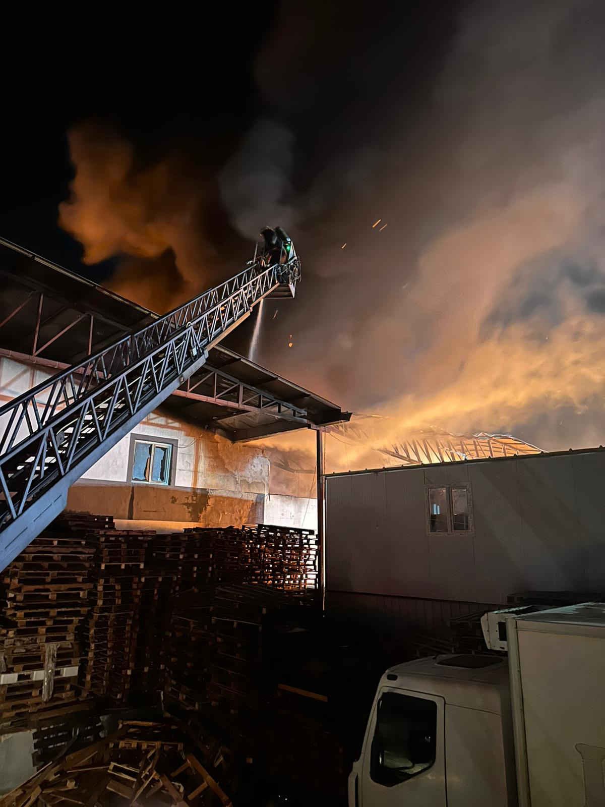 haberimizvar.net- Aksu ilçesi Atatürk Mahallesi 6'ncı Sokak'taki meyve-sebze paketleme fabrikasının, paketlemede kullanılan ambalajlarının bulunduğu deposunda, saat 02.00 sıralarında yangın çıktı. Dumanı fark eden fabrika çalışanlarının ihbarıyla adrese ekipler yönlendirildi. İtfaiye ekipleri, kısa sürede tüm depoyu saran yangının bitişikteki iş yerlerine sıçramaması için büyük çaba sarf etti. Yangın sırasında fabrikanın çatısı çöktü. Yangın, itfaiye ekiplerinin 3 saatlik müdahalesiyle kontrol altına alındı. Ekipler, sabahın ilk saatlerine kadar soğutma çalışmalarına devam etti. 1800 metrekarelik büyüklüğe sahip fabrikanın, 1600 metrekarelik alanı zarar gördü.
