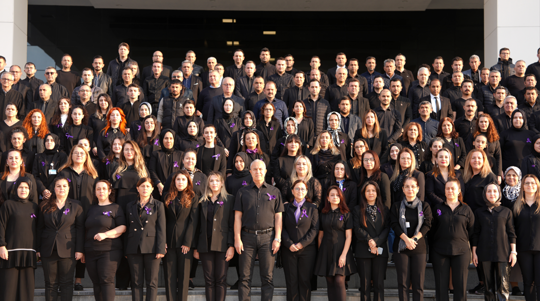 haberimizvar.net- 25 Kasım Kadına Yönelik Şiddete Karşı Uluslararası Mücadele Günü'nde Alanya Belediye Başkanı Osman Tarık Özçelik'in çağrısıyla, tüm birimlerde görev yapan personel gün boyunca siyah giyinerek kadına yönelik şiddete karşı toplumsal duyarlılığa vurgu yaptı. Başkan Özçelik, başkan yardımcıları ve personel, mesai saati öncesinde belediye hizmet binasının arkasında bir araya geldi.