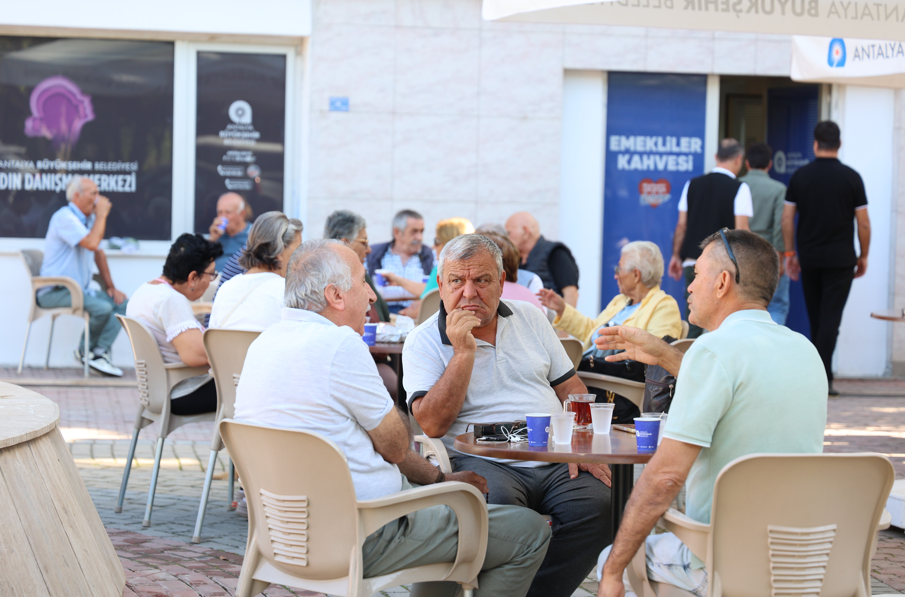 Antalya Büyükşehir Belediyesi'nin Alanya Mahmutlar Mahallesi'nde hizmete açtığı Emekliler Kahvesi, emeklilerden yoğun ilgi görüyor.