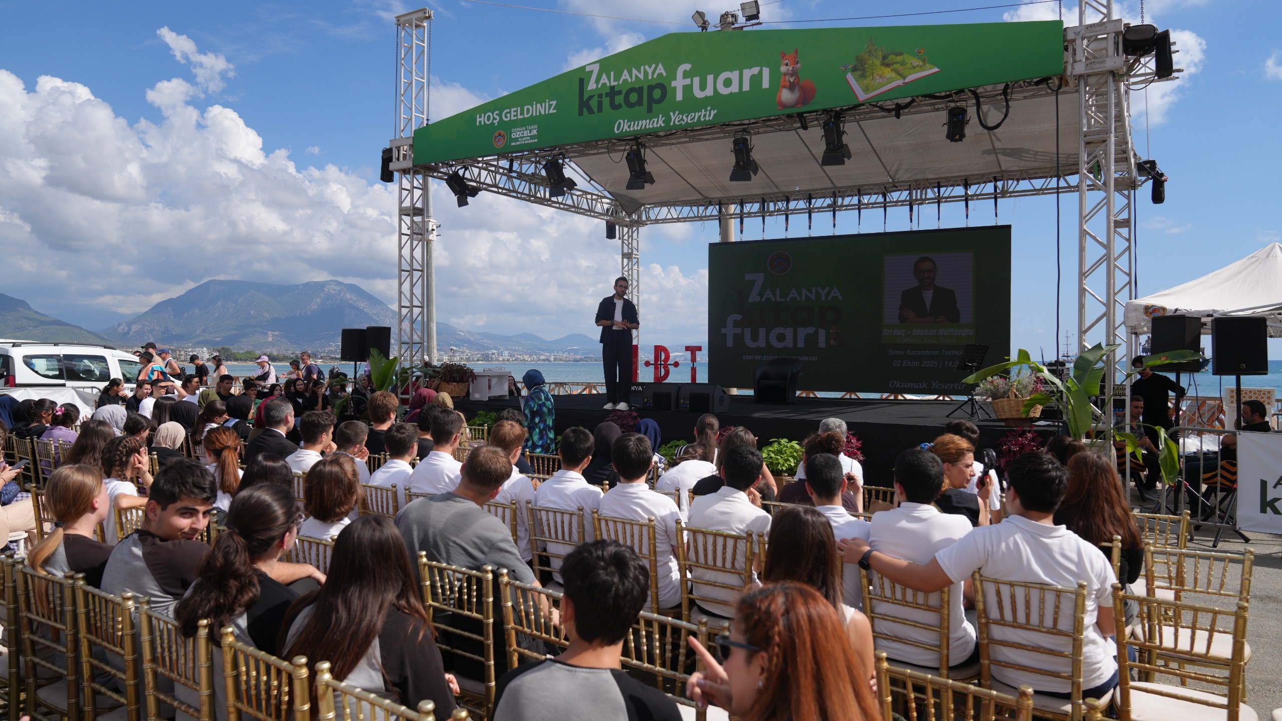 haberimizvar.net- Bu yıl ‘Okumak Yeşertir’ teması ile Eski Belediye Binası arkasında gerçekleştirilen 7. Alanya Kitap Fuarı tüm coşkusuyla devam ediyor. Ülkemizin önde gelen yayınevlerinin alanda açtıkları stantlarda on binlerce kitap okurları ile buluşuyor. En sevilen yazarları da görme imkânı bulan katılımcılar her gün gerçekleşen söyleşilere de yoğun ilgi gösteriyorlar. Alanya Belediyesi ile İlçe Milli Eğitim Müdürlüğü iş birliğinde kent genelindeki tüm öğrenciler fuara katılma imkânı buluyor.