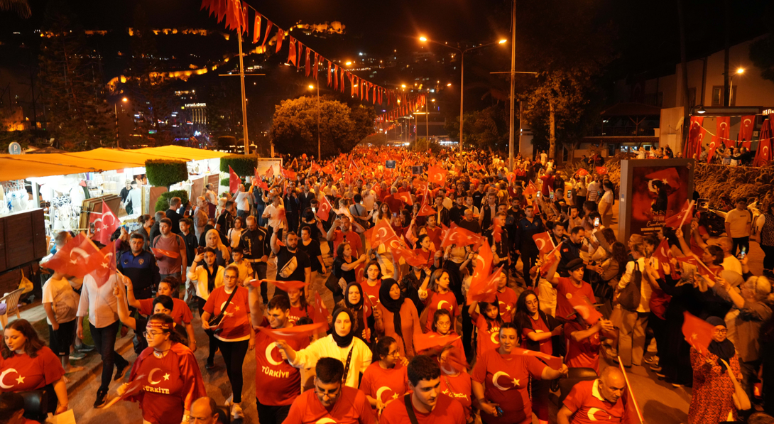 Binlerce vatandaş ellerinde Türk bayraklarıyla marşlar eşliğinde belirlenen güzergâhta yürüyüşe geçti. Renkli görüntülere sahne olan Fener Alayı Yürüyüşü, Atatürk Caddesi, Bostancıpınarı Caddesi ve İskele Caddesi boyunca sürdü. Çok sayıda vatandaş ise yürüyüşe balkonlarından ve iş yerlerinden destek verdi.