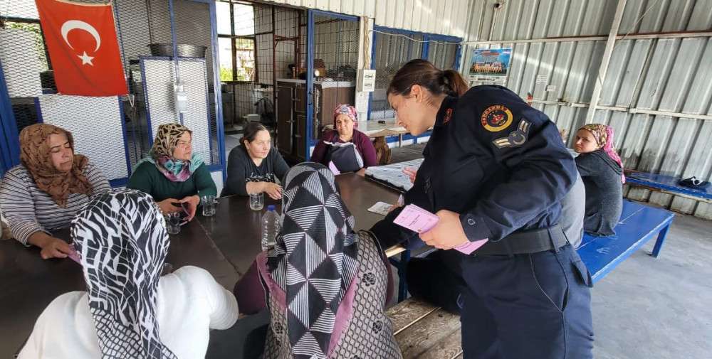 Antalya'nın Alanya ilçesinde jandarma ekipleri çalışan kadınları ziyaret ederek, KADES hakkında bilgi verdi ve telefonlara uygulamayı yükletti.