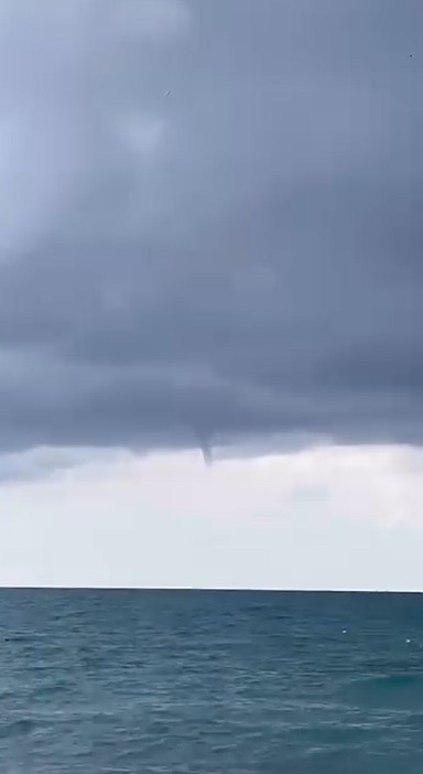 haberimizvar.net- Alanya'ya sağlı Konaklı Mahallesinde sabah saatlerinde deniz üzerinde oluşup karaya ulaşmadan kısa süre sonra etkisini kaybeden hortum vatandaş tarafından cep telefonu kamerasıyla görüntülendi.