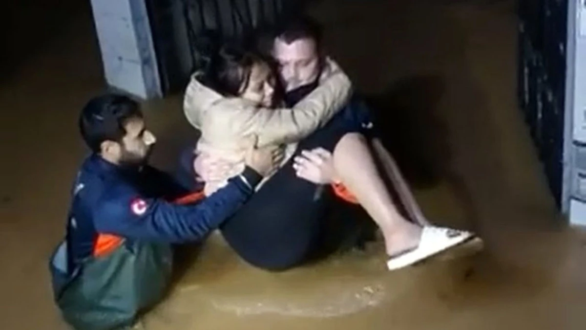 Antalya Alanya'da etkili olan sağanak sonrası evinde mahsur kalan yabancı uyruklu kadın, AFAD ve İHH ekipleri tarafından kurtarıldı.