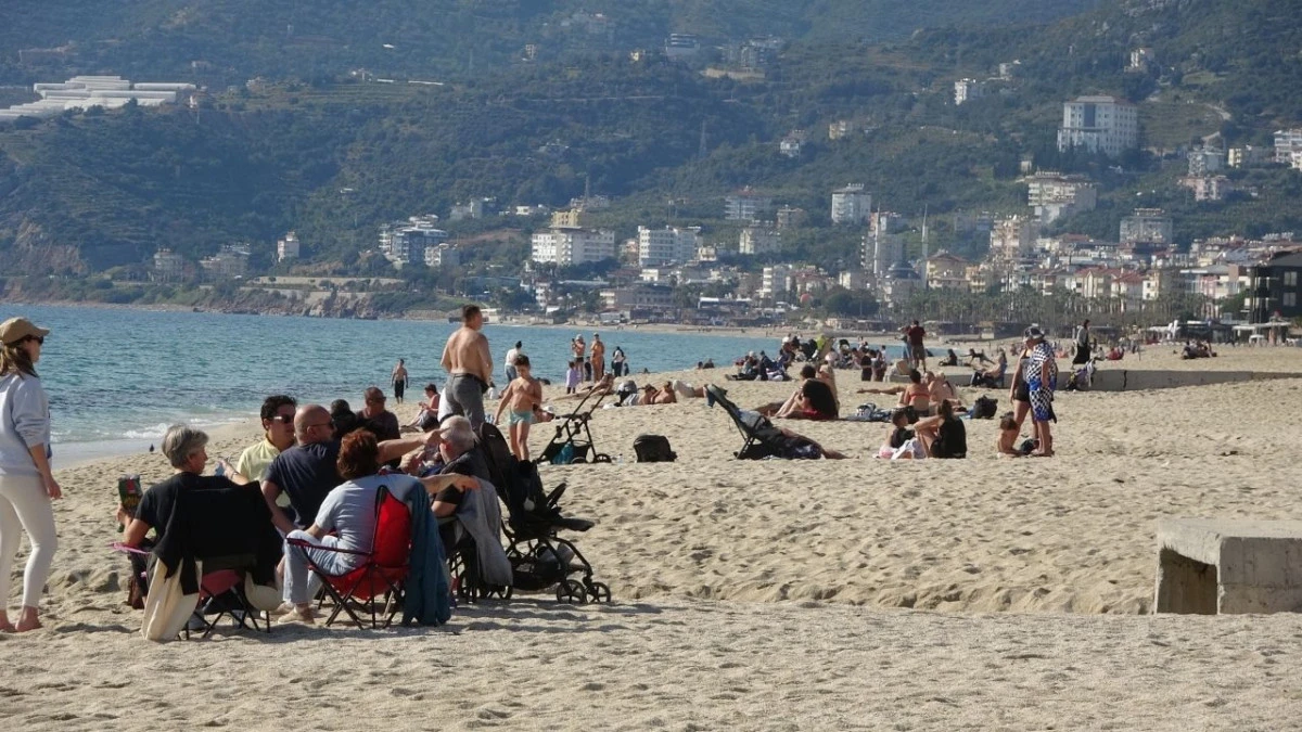 Antalya'nın Alanya ilçesinde hava sıcaklığının 19 derece, deniz suyu sıcaklığının ise 18 derece ölçülmesiyle birlikte yerli ve yabancı turistler dünyaca ünlü Kleopatra Plajı'na akın etti.