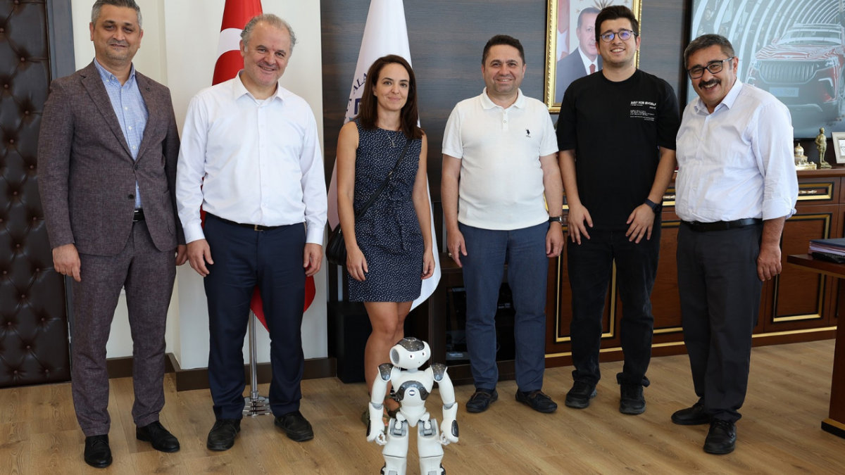 Önceden hazır hale getirilmiş NAO isimli insansı robota, insan hareketlerini tanıma ve bu hareketlere uygun tepkiler verme yeteneğini kazandırmak üzere yazılımlar yüklenecek; robot eğitiminde taklit yolu ile öğrenme modeli kullanılacak. Projenin destek almasının ardından Rafet Kayış Mühendislik Fakültesi Dekanı Prof. Dr. Erhan Cengiz, beraberinde Dr. Öğr. Üyesi Özge Öztimur Karadağ, Arş. Gör. Ali Çoban ile Rektör Prof. Dr. Kenan Ahmet Türkdoğan’ı makamında ziyaret ettiler. Ziyarette Rektör Yardımcılarından Prof. Dr. Mehmet Kılıç ve Prof. Dr. Atıf Bayramoğlu da yer aldı.
