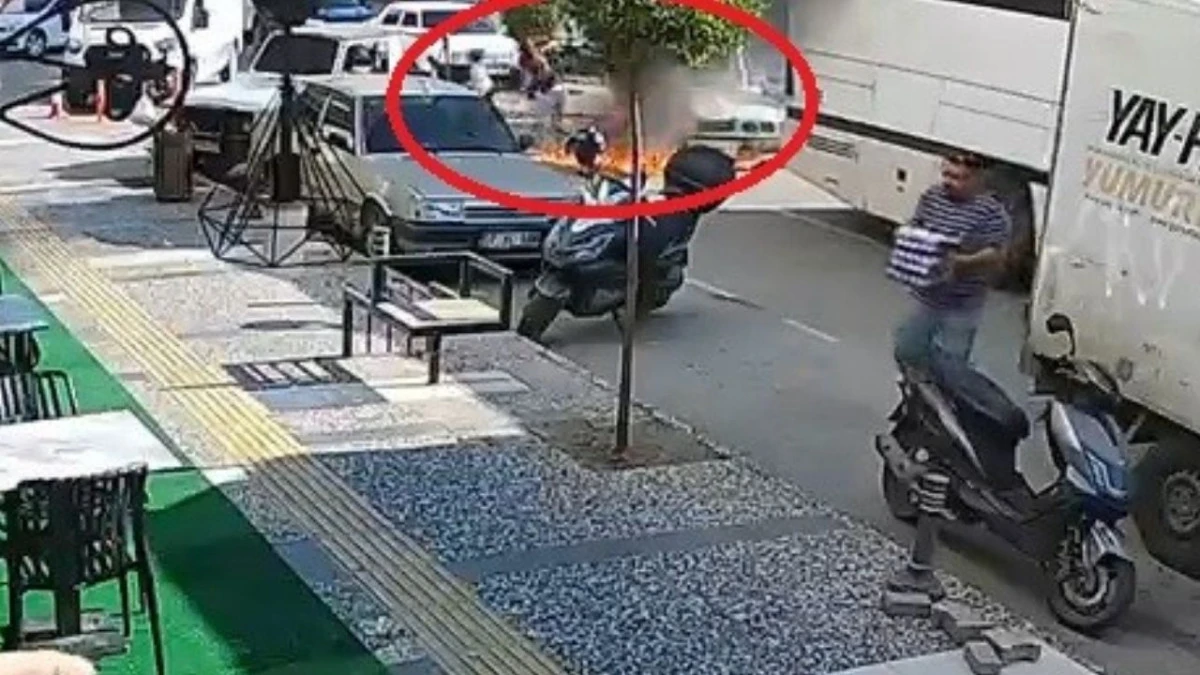 Antalya'nın Manavgat ilçesinde trafik ışıklarında bekleyen otomobilde bir anda patlama yaşandı. Kısa sürede alev topuna dönen araçtaki sürücü anne ile bebeği ve diğer yolcular kendilerini son anda dışarıya attı. Araç çevredekilerin yangın tüpleriyle müdahalesinin ardından söndürüldü.
