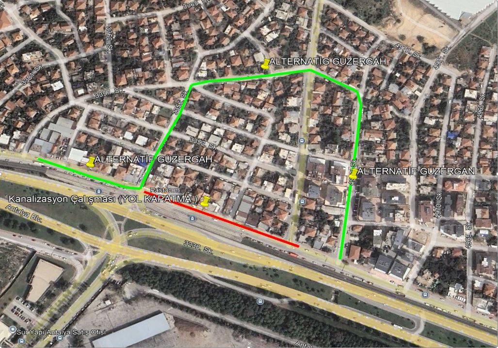 Antalya Büyükşehir Belediyesi ASAT Genel Müdürlüğü, Kepez İlçesi Çamlıbel-Fatih Mahalleleri Antalya Bulvarı Yan yolu üzerinde içme suyu ve kanalizasyon şebeke hattı çalışması yapacak. Çalışma kapsamında 28 Nisan-17 Mayıs tarihleri arasında Antalya Bulvarı yan yolunun bir kısmı trafiğe kapatılacak.