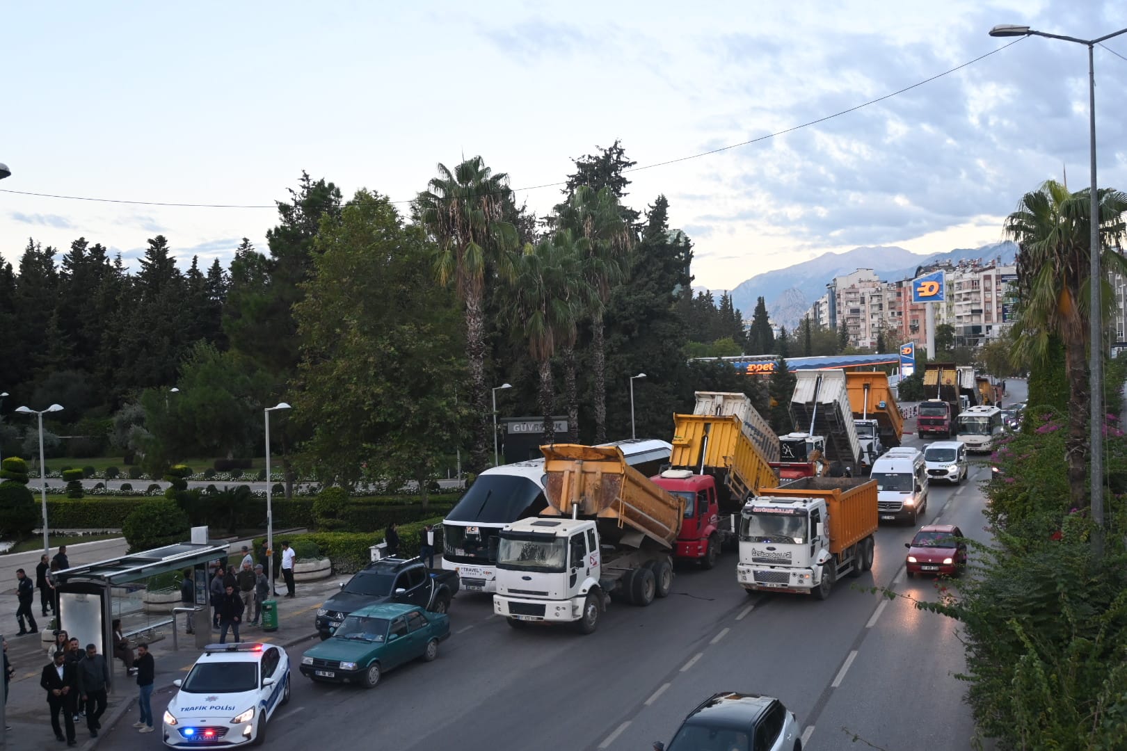 Antalya Büyükşehir Belediyesi önünde sabah saatlerinde toplanan hafriyatçılar, kendilerine uygulanan para cezalarını protesto etti. Sabah 07.00'de başlayan eylemde kamyonlar belediye binasının giriş ve çıkışlarına park edilerek ulaşım durduruldu.
