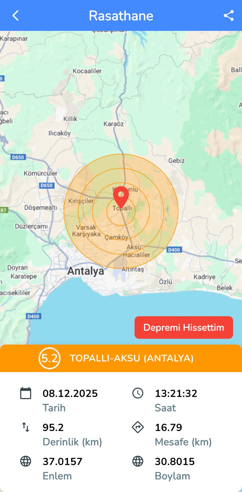 Antalya beşik gibi sallanıyor. Antalya'da Konyaaltı ilçesi merkezli dün yaşanan 4,3'lük depremin ardından saat 13.21'de yeniden sallandı. Serik merkezli depremin şiddeti 4,9. İşte detaylar...