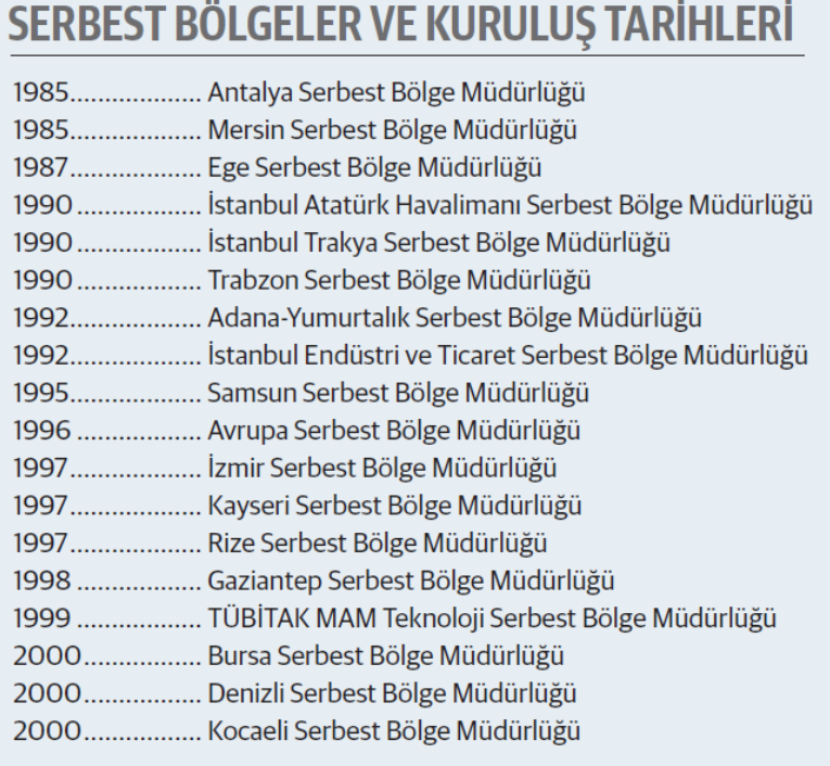 Mersin’in yanı sıra 1985’te kamu arazisi üzerine kurulan Antalya, 1987’de kurulan Ege ile 1989’de kurulan Toros, Adana, Yumurtalık ve 1990’da kurulan Trabzon serbest bölgelerinde de aynı süreçler yaşanarak üst yapıların yeni sahipleri belirlenecek.