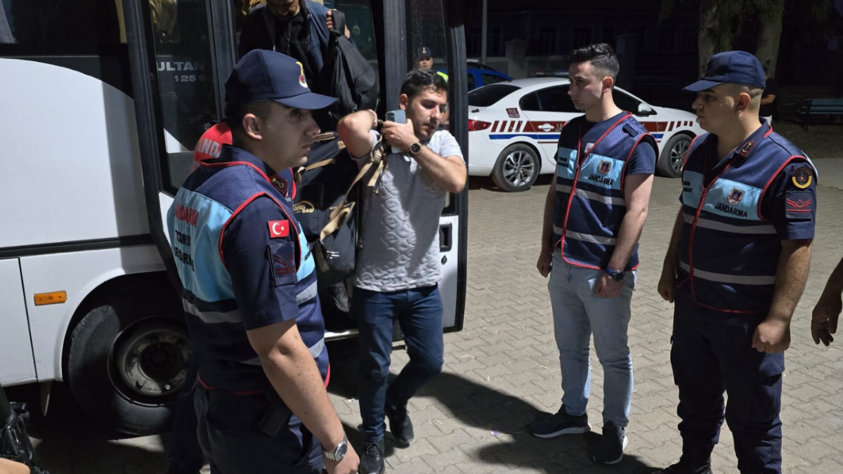 Aralarında 1 Türk vatandaşının da bulunduğu İran, Irak, Afganistan, Suriye, Filistin, Yemen ve Doğu Türkistan uyruklu kaçak göçmenler otobüslerle ilçe merkezindeki spor salonuna getirildi.