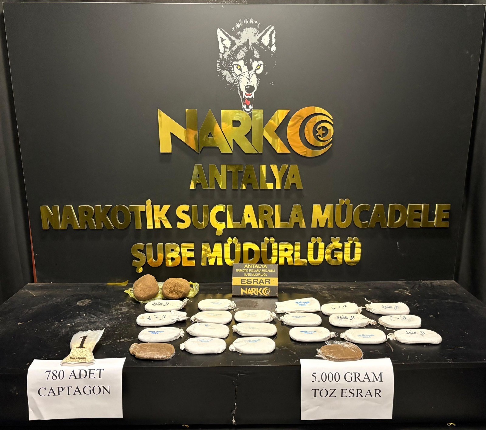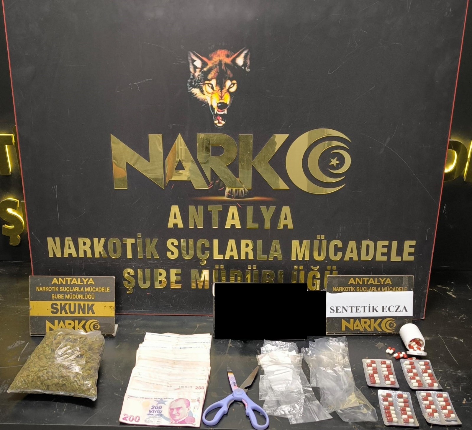 haberimizvar.net- Antalya İl Emniyet Müdürlüğü Narkotik Suçlarla Mücadele Şube Müdürlüğü koordinesinde, il genelinde son 1 haftada uyuşturucu suçlarına yönelik operasyonlar gerçekleştirildi. Yapılan çalışmalarda; 15 kilogram esrar, 780 adet captagon hap, 189 adet sentetik ecza, 144 gram kokain, 69 adet ve yaklaşık 14 bin 838 kullanımlık sentetik kannabinoid (A4), 35 gram metamfetamin, 11 gram eroin, 2 hassas terazi, 5 adet ateşli silah, 13 adet fişek, suçtan elde edildiği değerlendirilen bir miktar döviz ve Türk Lirası ele geçirildi.