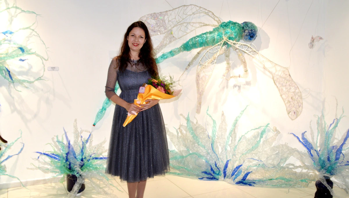 Atık plastik maddeleri değerlendirip 'Şahmeran' ve 'Denizkızı' figürleri yanında doğa canlılarının heykellerini de yapan Güzel Amirova, çevreci sanat üretimlerini bir kez daha Antalyalı sanatseverlerle buluşturdu.
