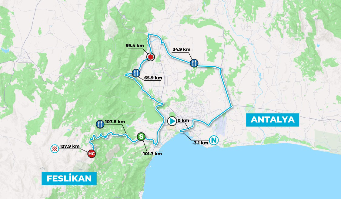 Bu yıl Çeşme'den başlayan ve 8 etaptan oluşan Cumhurbaşkanlığı Türkiye Bisiklet Turu'nda, toplam 1133 kilometre koşulacak. Çeşme'den Selçuk'a, Aydın'dan Marmaris'e, Marmaris'ten Kıran'a ve Marmaris'ten Fethiye'ye ilk 4 etabın ardından 30 Nisan Perşembe günü Antalya etapları başlayacak. 30 Nisan'da Patara'dan Kemer'e 180,7 kilometrelik etabın ardından 1 Mayıs Cuma günü Antalya-Feslikan Yaylası arası 127,9 kilometrelik etap gerçekleşecek. 2 Mayıs Cumartesi günü ise Antalya- Antalya etabı toplam 152,8 kilometreden oluşuyor.