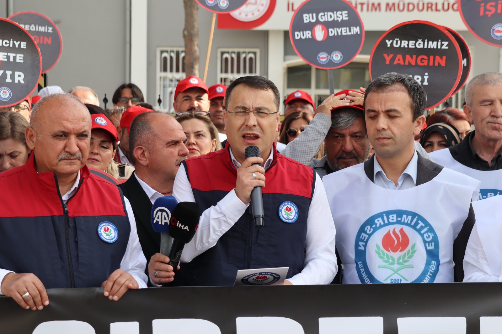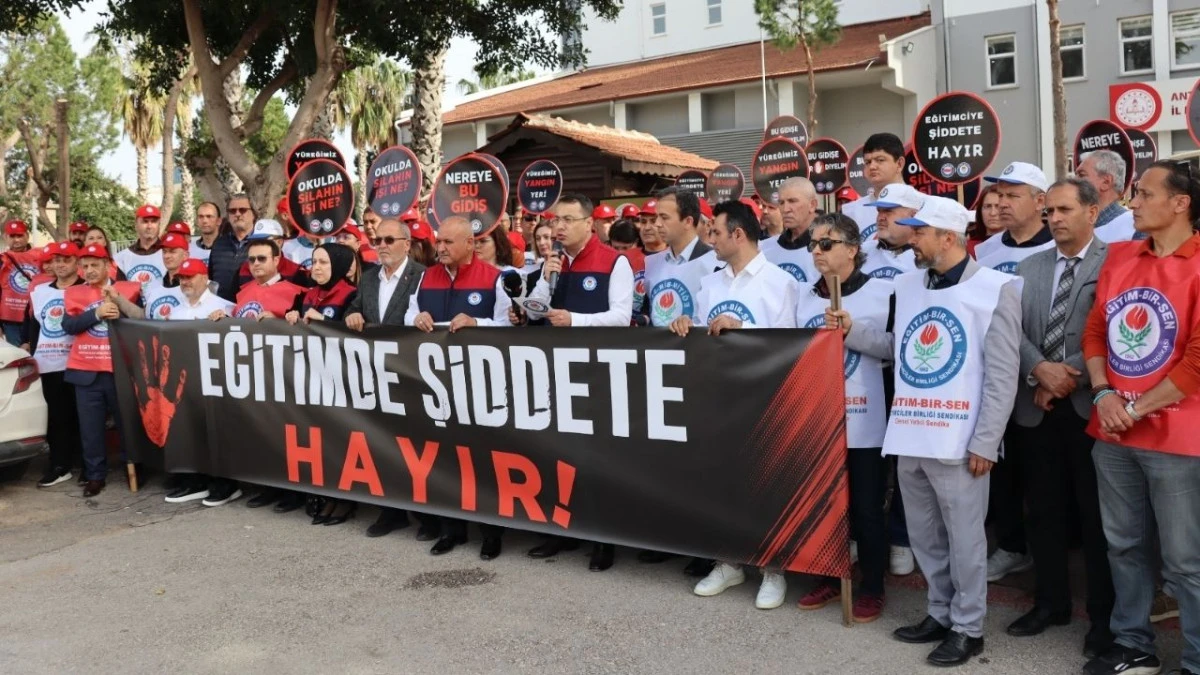 Şanlıurfa’nın Siverek ilçesinde bir lisede düzenlenen silahlı saldırıda 10 öğrenci, 4 öğretmen, 1 polis ve 1 kantin işletmecisi olmak üzere toplam 16 kişi yaralanırken, bir gün sonra Kahramanmaraş’ta bir ortaokulda yaşanan saldırıda 4 kişi hayatını kaybetti, 20 kişi yaralandı. Türkiye’yi sarsan olayların ardından Eğitim Bir Sen Antalya Şubesi, Antalya Milli Eğitim Müdürlüğü önünde protesto düzenledi.