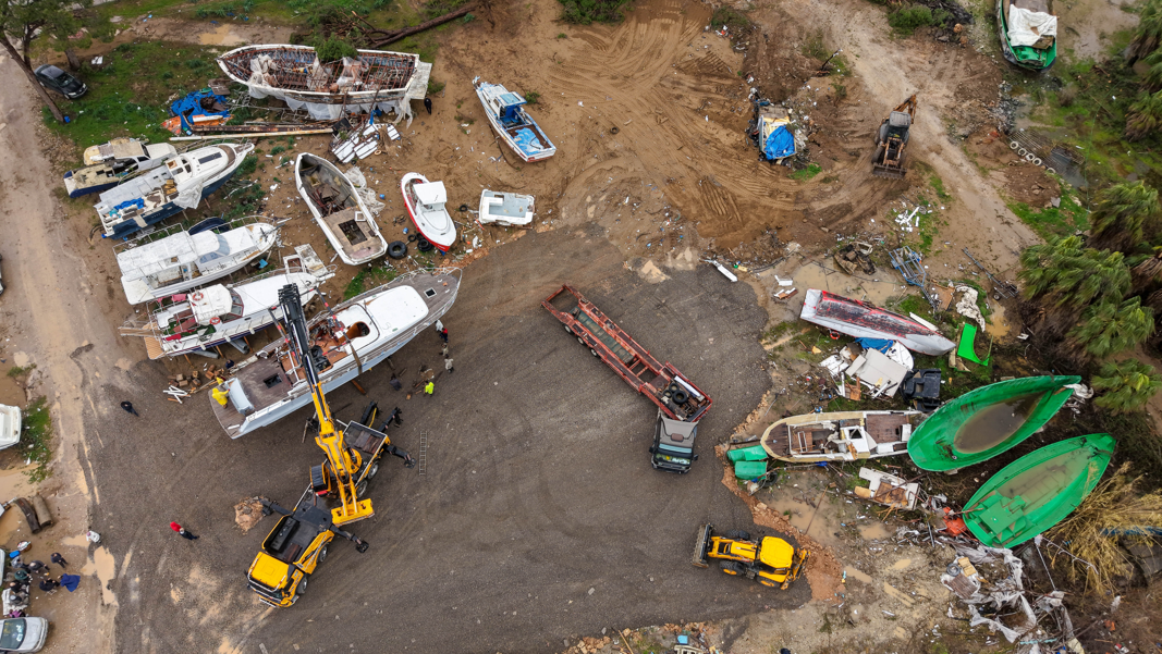 Hasar gören ve batan tekneler için bölgede kaldırma çalışmaları başlatıldı. Teknelerin bazıları vinç ile kaldırılırken, alanda iş makineleriyle de temizlik yapıldı. Diğer yandan, hortum nedeniyle batan bazı teknelerin hala suyun içerisinde olduğu görüldü.