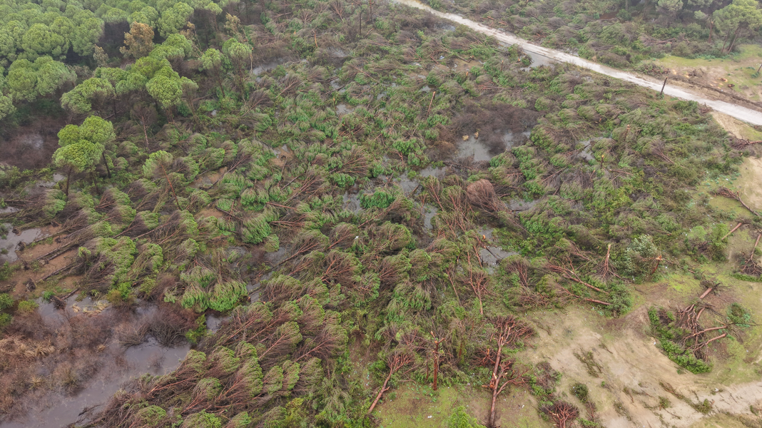 Hortumun neden olduğu hasar, dron ile görüntülendi. Görüntülerde hasar gören teknelerin kaldırma çalışmaları, batan tekneler ile devrilen ağaçların yarattığı tahribat net şekilde görüldü.