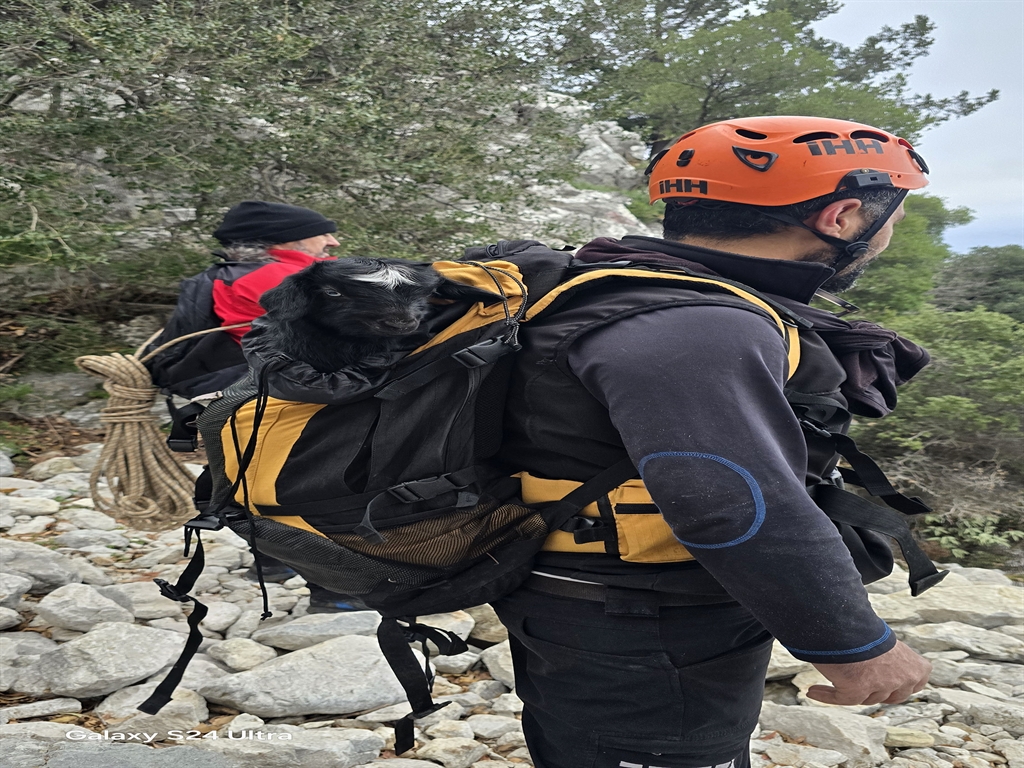 haberimizvar.net- Antalya'nın Serik ilçesine bağlı Gebiz Yumaklar bölgesindeki dağlık alanda 10 keçi mahsur kaldı. İHH ekipleri, 12 gündür mahsur kalan keçileri kurtarmak için operasyon düzenledi. Operasyonla 1'i yavru 3 keçi kurtarılırken, diğerleri kaçtı. İHH ekibi, yavru keçiyi çantanın içerisine koyarak, korumaya aldı.