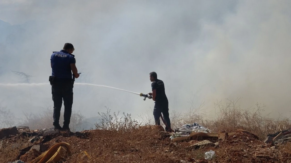 Antalya'da otluk ve ağaçlık alanda çıkan yangın, itfaiye ekiplerinin müdahalesiyle büyümeden söndürüldü.