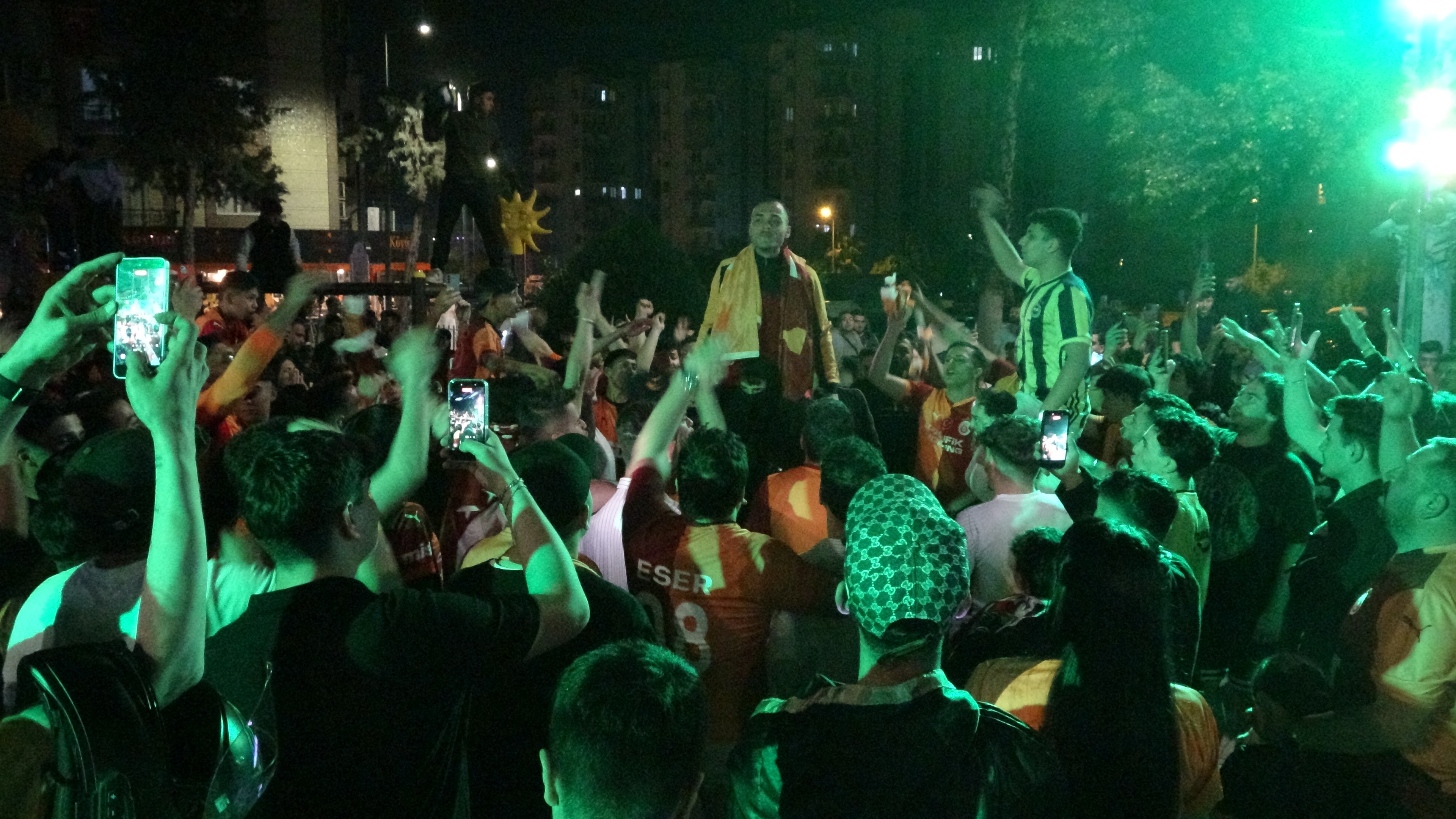 Öte yandan, aynı saatlerde Kepez ilçesi Kültür Mahallesi’nde bulunan kafeler caddesinde Galatasaray taraftarları galibiyeti kutladı. Araçlarıyla konvoy oluşturan taraftarlar, uzun süre kornalara basarak şehir turu attı. Ellerinde Galatasaray bayrakları bulunan taraftarlar, marşlar ve tezahüratlar eşliğinde derbi galibiyetini kutladı. Kutlamalara katılan bazı taraftarların araçlardan sarkarak bayrak salladığı, bazı vatandaşların ise cep telefonlarıyla o anları kaydettiği görüldü. Polis ekipleri kutlamaların yoğunlaştığı bölgelerde önlem alarak herhangi bir olumsuzluk yaşanmaması için çalışma yürüttü.