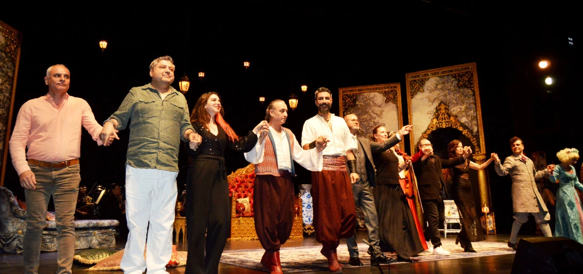 haberimizvar.net- Avrupa müziğinde Türk etkilerinin en belirgin örneklerinden biri olarak kabul edilen eserin prömiyeri Haşim İşcan Kültür Merkezi'ndeki opera sahnesinde gerçekleşti. Wolfgang Amadeus Mozart'ın Osmanlı'dan ilham alan büyüleyici operasını rejisör Cenk Bıyık sahneye koydu. Eserde 'Belmonte' rolünü Dağhan Ergün, Erdem Erdoğan ile Ulaş Kocatürk üstlendi. 'Osmin' rolünü Sabri Doğan Çapanoğlu, Enis C. Kızılgül ve Engin Suna, 'Constanze' rolünü Sezgi Elhüseyni, Ş. Sılay Erman, 'Blonde' rolünü İrem Başak Alkan ve İ. Meriç Karataş, 'Pedrillo' rolünü Serkan Bodur, Fatih Kayhan, 'Selim Paşa' rolünü ise Ümit Burak Tekinay, Yusuf Yıldız dönüşümlü canlandırıyor.