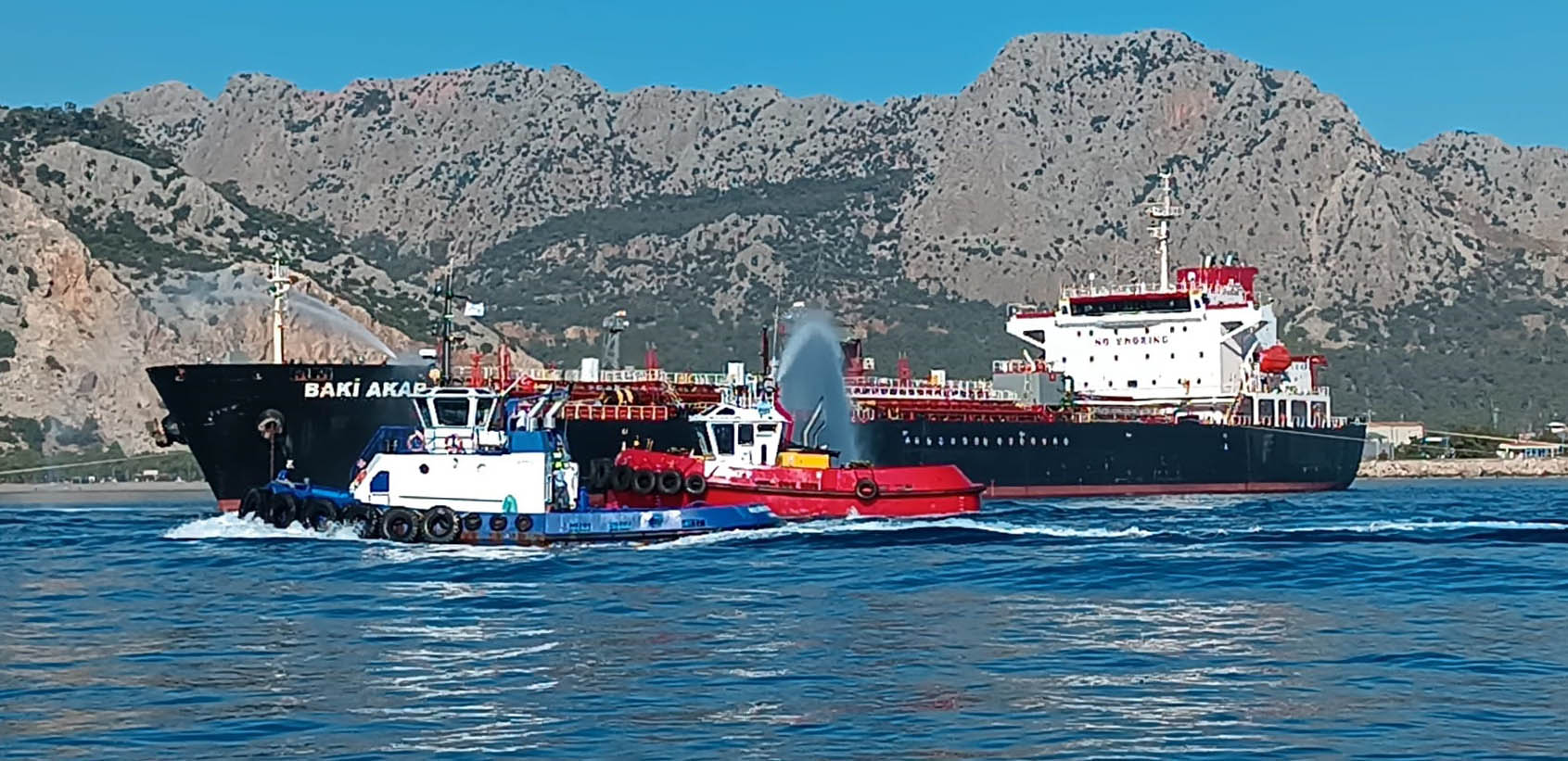 Antalya'da bugün sabah saatlerinde, Baki Akar isimli tanker gemisinde yangın, arama- kurtarma ve yangın sonrası deniz kirliliği tatbikatları gerçekleştirildi.
