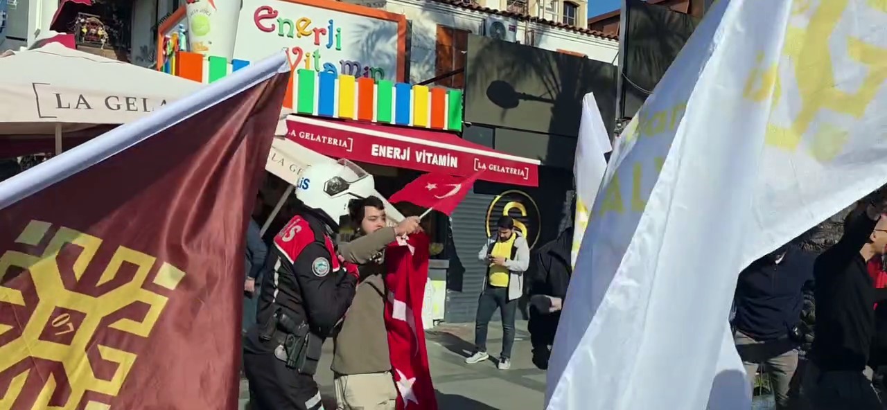 haberimizvar.net- Muratpaşa ilçesi Kazım Özalp Caddesi Saat Kulesi önünde Yörükeli Hareketi üyeleri, çözüm sürecine tepki göstermek için basın açıklaması yaptı. Grup, basın açıklaması yaptığı sırada KESK Antalya Şubeler Platformu, DİSK Akdeniz Bölge Temsilciliği ve Tüm Emeklilerin Sendikası'nın çağrısıyla TBMM Genel Kurulu'nda görüşmeleri süren 2026 Yılı Merkezi Yönetim Bütçe Kanunu Teklifi'ni protesto etmek amacıyla düzenlenen mitinge katılmak için yürüyüş yapan Türkiye İşçi Partisi'ne (TİP) üye grup ile karşı karşıya geldi. Slogan atan TİP üyeleri ile ülkücü grup arasında kısa süreli tartışma yaşandı. Olay, bölgede güvenlik önlemi alan polis ekipleri tarafından büyümeden sonlandırıldı. Araya giren Güvenlik Şube Müdürlüğü ve Çevik Kuvvet ekipleri tarafından her iki grubun üyeleri farklı istikametlere yönlendirildi.
