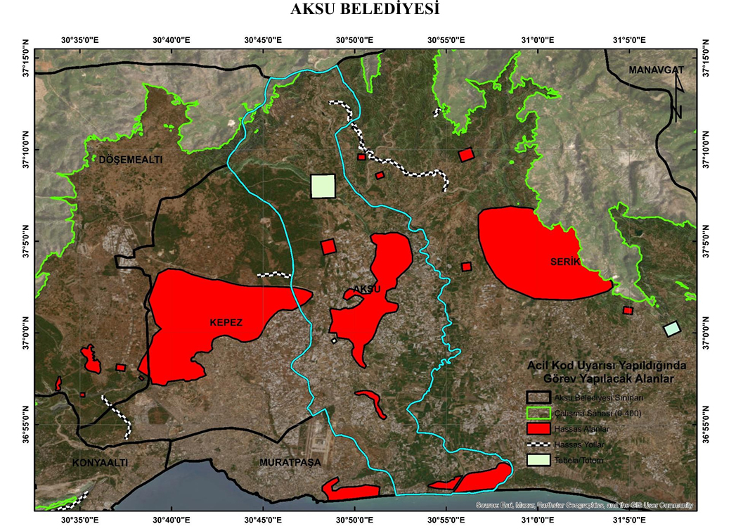 Yangına hassas 125 nokta ise şöyle; Aksu Belediyesi 5 bölge, Alanya Belediyesi 6 bölge, Demre Belediyesi 3 bölge, Döşemealtı Belediyesi 5 bölge, Finike Belediyesi 3 bölge, Gazipaşa Belediyesi 2 bölge, Kaş Belediyesi 4 bölge, Kemer Belediyesi 6 bölge, Kepez Belediyesi 3 alan, Konyaaltı Belediyesi 3 bölge, Kumluca Belediyesi 8 bölge, Manavgat Belediyesi 12 bölge, Muratpaşa Belediyesi 1 bölge, Serik Belediyesi 4 bölge, jandarma sorumluluğunda 31 bölge, emniyet sorumluluğunda 19 bölge, Sahil Güvenlik sorumluluğunda 10 bölge.