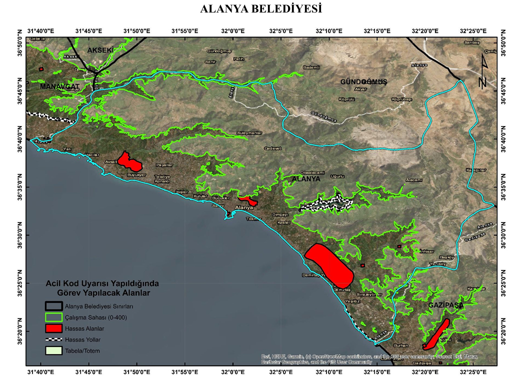 Belirlenen hassas alan ve yol olarak bu noktalarda görev alacak jandarma, polis, zabıta ve Sahil Güvenlik Komutanlığı ekipleri tarafından sera ve bahçe atıklarının yakılması, kontrolsüz insan hareketleri, yoğun turizm faaliyetleri ve kontrolsüz ateş yakılması sonrası oluşabilecek yangınlar, kontrolsüz piknik ve alkol kullanımı, muz atıkları, moloz ve her türlü çöp atılması gibi yangına sebep olabilecek her türlü tehlike önlenecek.