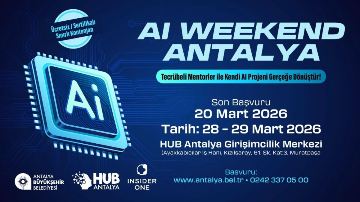Antalya Büyükşehir Belediyesi ve Insider One iş birliğiyle düzenlenen "AI Weekend Antalya 2026", 28-29 Mart tarihlerinde teknoloji meraklılarını geleceği inşa etmeye davet ediyor.