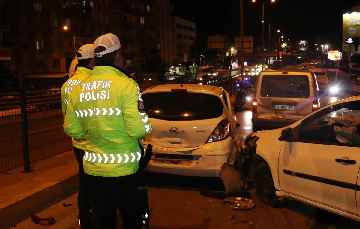 Yan dönen araca, arkadan gelen ve duramayan 07 ALL 508, 34 NPZ 024, 07 BBA 376, 07 FPP 59 ve 07 GA 662 plakalı otomobiller çarptı. Zincirleme kazada yaralanan olmazken araçlarda maddi hasar meydana geldi.