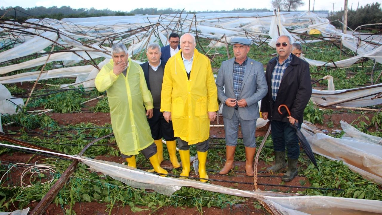 Burada basın mensuplarına açıklama yapan Şemsi Bayraktar, "İklim değişikliği ve mevsim kaymaları tarım sektörüne üretim noktasında fevkalade zarar veriyor. Kumluca, Kemer, Aksu, Serik ve Kepez'de 50 mahallede 1437 üreticimiz ve 5 bin 34 dekar meyve, sebze ve buğday alanımız zarar gördü. Hortum ve fırtına nedeniyle Kumluca, Aksu, Demre'de 17 mahallede 162 üreticimiz 787 dekar tarım alanı zarar gördü. Fırtına nedeniyle Finike ve Kepez'de 47 üreticimiz 3 mahallede 115 dekar tarım alanımız zarar gördü. Dolu afeti nedeniyle Döşemealtı, Gazipaşa ve Aksu ilçelerinde 5 mahallede 151 üreticimiz 985 dekar tarım alanı meyve ve sebze ürünlerimiz, sera yapılarımız zarar gördü" dedi.