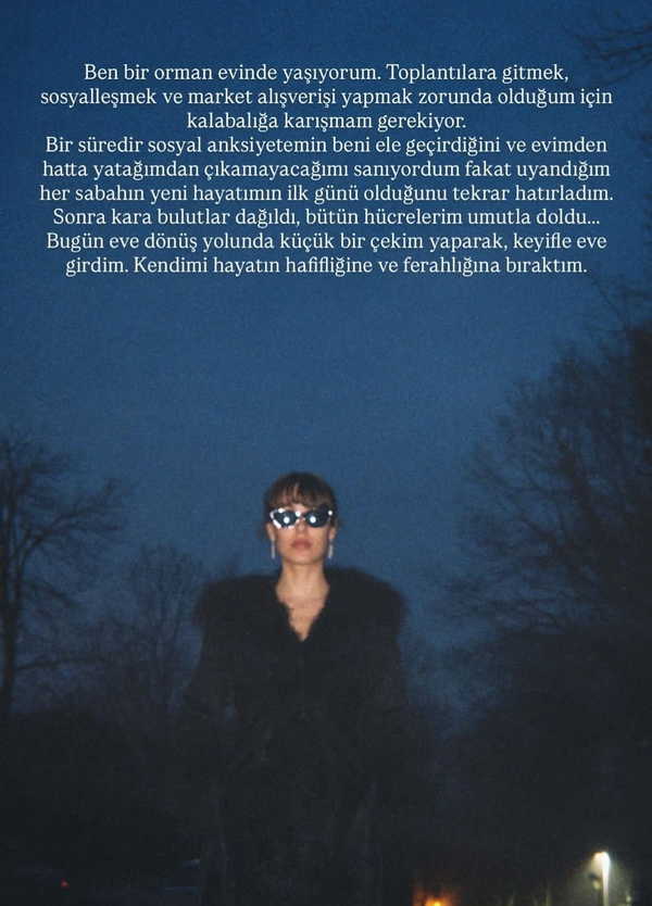 Orman evinde yaşayan ve işi gereği sık sık kalabalığa karışmak zorunda olan Antalyalı ünlü oyuncu, yaşadığı içsel savaşı şu sözlerle ifade etti: "Bir süredir sosyal anksiyetemin beni ele geçirdiğini ve evimden hatta yatağımdan çıkamayacağımı sanıyordum fakat uyandığım her sabahın yeni hayatımın ilk günü olduğunu tekrar hatırladım."