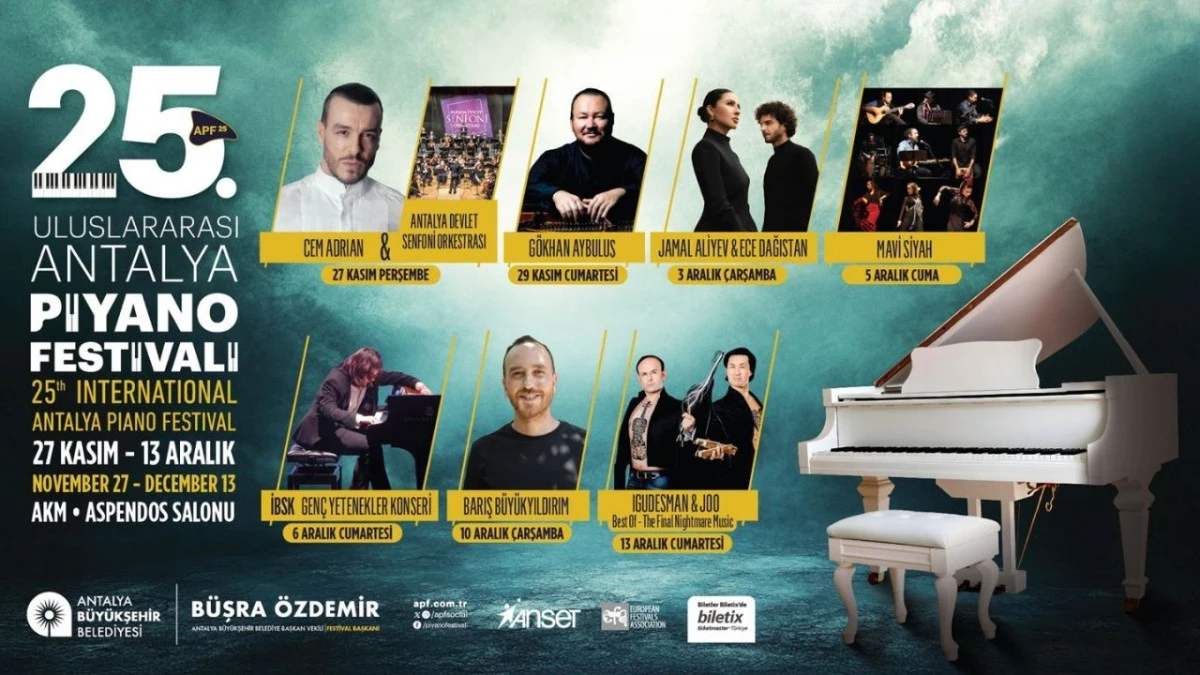 Türkiye'nin en önemli kültür-sanat etkinliklerinden biri olan Uluslararası Antalya Piyano Festivali, bu yıl 25'inci kez müzikseverle buluşacak. Piyano Festivali'nin açılışı 27 Kasım Perşembe günü Antalya Atatürk Kültür Merkezi (AKM) Aspendos Salonu'nda, Türk müziğinin güçlü seslerinden Cem Adrian ve Antalya Devlet Senfoni Orkestrası konseri ile gerçekleşecek.