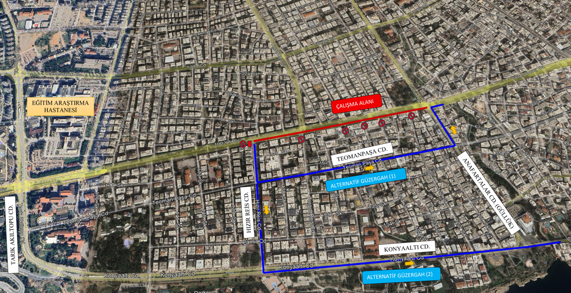 haberimizvar.net- Büyükşehir Belediyesi Fen İşleri Dairesi Başkanlığı’nın 100. Yıl Bulvarı üzerinde bir süreden beri sürdürdüğü asfalt çalışması etaplar halinde devam ediyor. Çalışma kapsamında 100. Yıl Bulvarı’nın Konyaaltı istikametinden şehir merkezi yönüne gidiş bölümünde, Hızır Reis Caddesi ile Anafartalar Caddesi (Güllük Kavşağı) arasında kalan yaklaşık 730 metrelik bölümde asfalt çalışması yapılacak. Çalışma kapsamında bu güzergâh 8 Mart 2026 Pazar günü saat 07.00 itibarıyla araç trafiğine kapatılacak. Yoğun bir çalışma programı uygulanarak yolun 9 Mart 2026 Pazartesi günü saat 06.00’da yeniden trafiğe açılması planlanıyor. Sürücülerin çalışma süresince alternatif güzergâhları tercih etmeleri istendi.