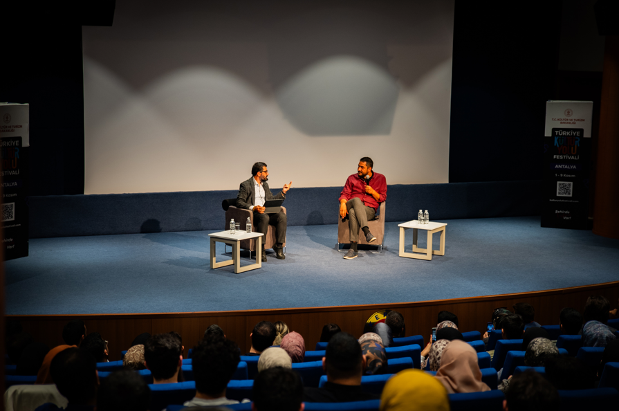 Antalya Kütüphanesi'nde düzenlenen 'Dijital Kültür Söyleşileri' etkinliğinde dijitalleşmenin kültürel yaşama etkileri konuşuldu. Ersin Çelik'in moderatörlüğünü üstlendiği söyleşide; Altay Cem Meriç dijital çağın toplumsal dönüşümlerine dair görüşlerini dinleyicilerle paylaştı.