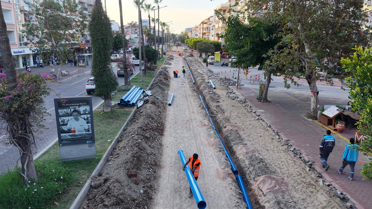 Başkan Özçelik, "3 Kasım'da 'Bismillah' dedik ve ilk kazmayı vurduk. O günden beri hava da müsaade etti. Şu an itibarıyla yaklaşık 2,5 kilometreyi tamamladık. Toplantılarda belirlediğimiz sıralamaya uyarak, altyapı firmaları Alanya'nın batı tarafından geliyor. En önde ASAT gidiyor, TEDAŞ girdi. Diğer firmalar da pazartesi gününden itibaren girmeye başlayacak. Düşündüğümüz hız çerçevesinden bir miktar önde gidiyoruz. Bu arada ana hatları döşedikten sonra binalara doğru çıkışları bütün firmalar veriyor. Su, elektrik, internet hatları yenilenmiş olur. Özellikle ara geçiş noktalarını hızlı şekilde işlemlerini tamamlayıp, kavşak geçişlerini aksatmıyoruz.