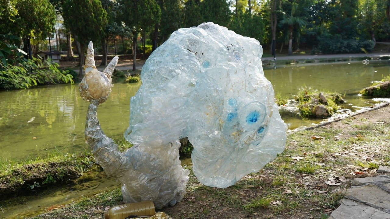 Geri dönüşüm atıklarından yeni oluşturduğu heykeli de anlatan Amirova, “Altın renkli salyangoz figürümü bulaşık deterjanı şişelerinden yaptım. Çünkü artık her şeyin güzel bir yanı var" ifadelerini kullandı.
