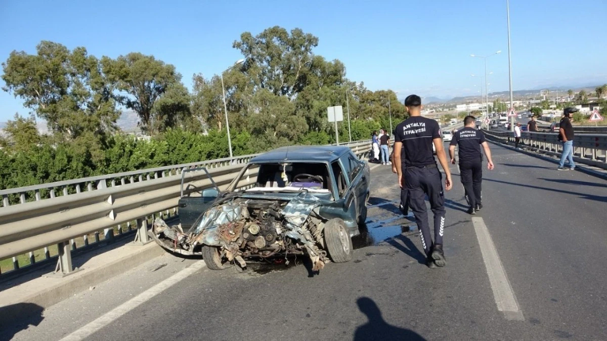 Antalya'nın Manavgat ilçesinde sürücüsünün direksiyon hakimiyetini kaybettiği Tofaş otomobil bariyerlere çarptı. Kazada hurdaya dönen araçtaki sürücü yaralandı. Kaza anında otomobilden etrafa saçılan parçalar, karşı şeritte seyir halindeki iki araca da zarar verdi, bir sürücüyü daha yaraladı.