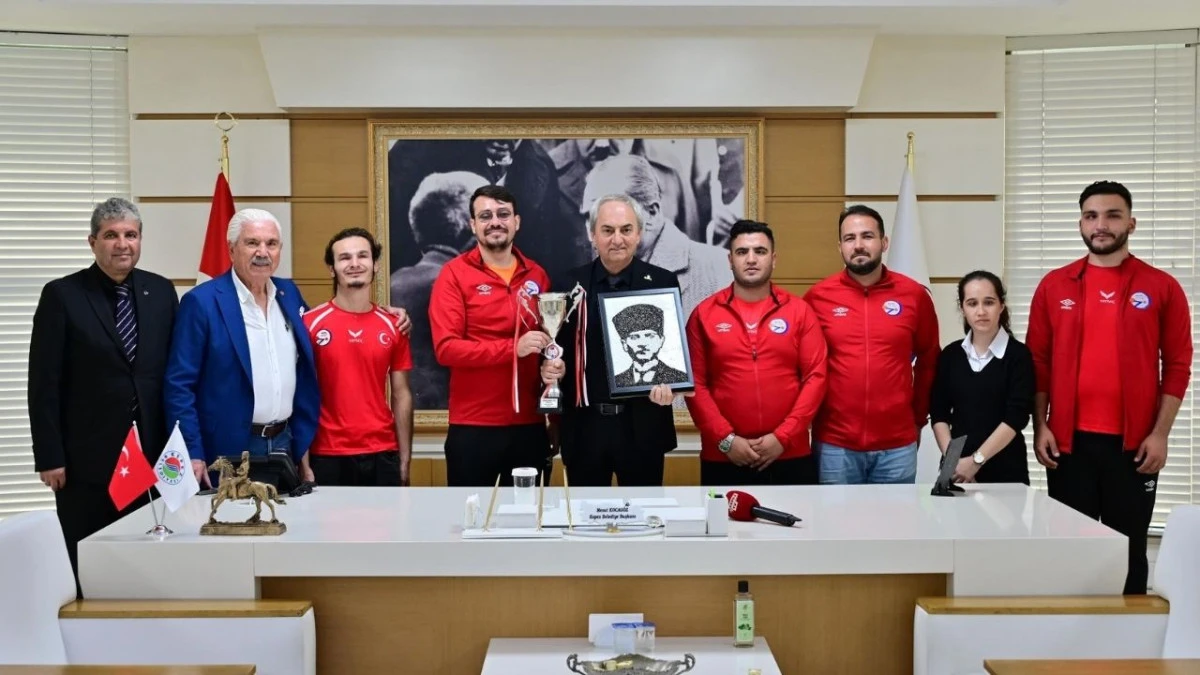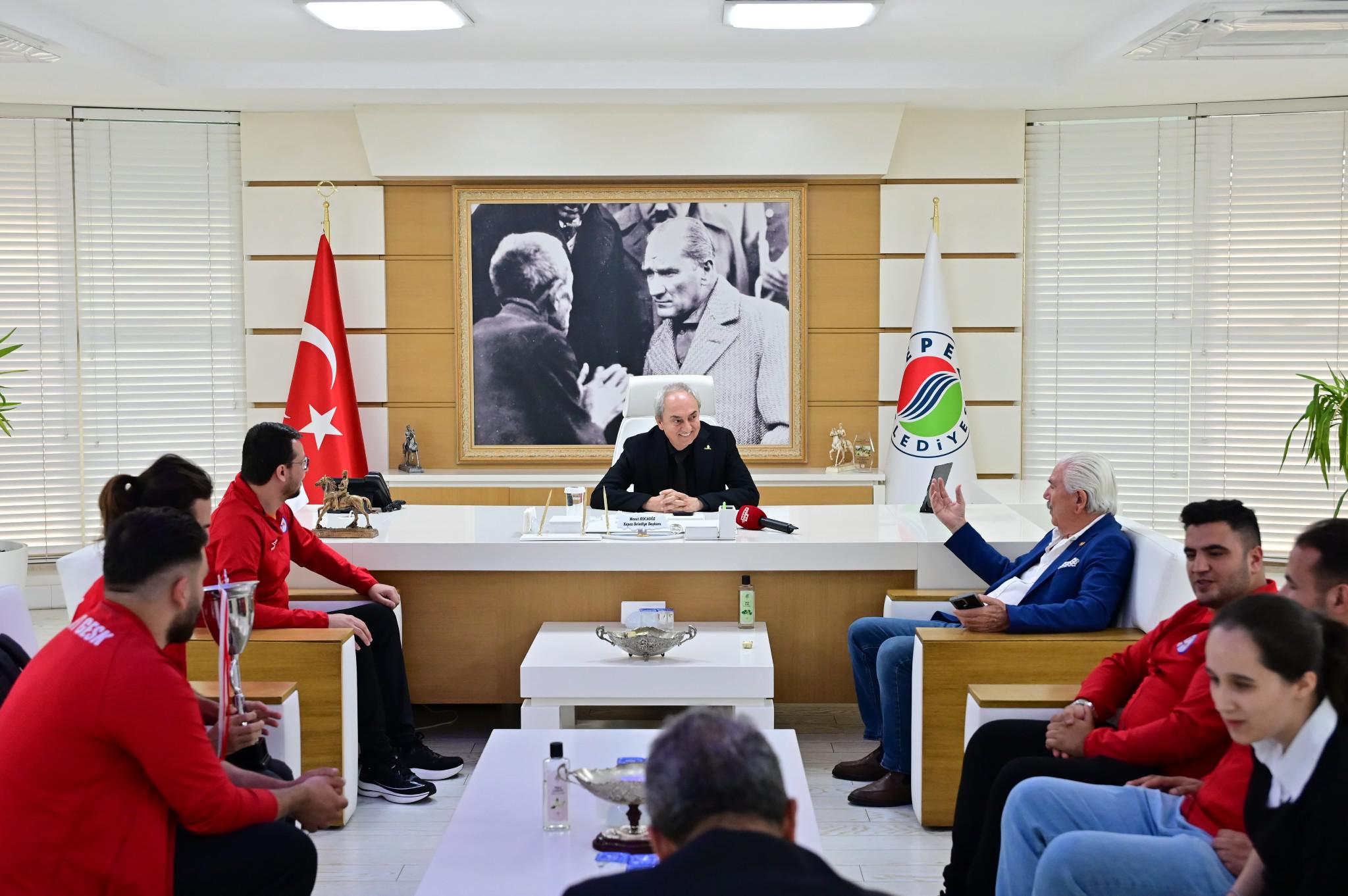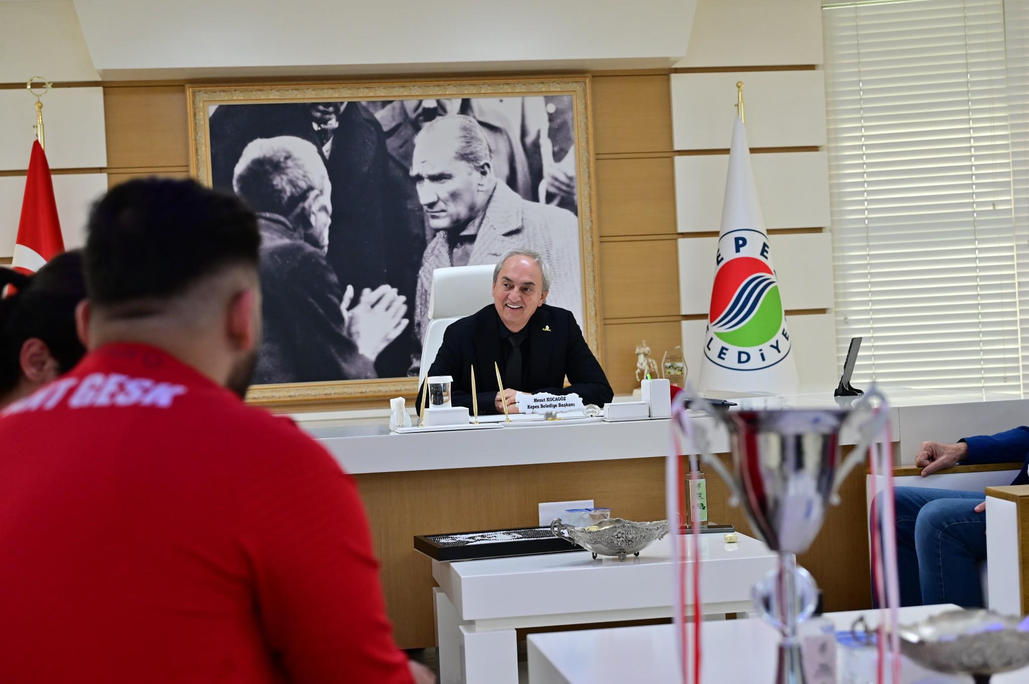 Aksaray’da düzenlenen Golbol Erkekler 3. Lig final müsabakalarında Türkiye ikincisi olarak 2.Lig’e yükselen Antalya Görme Engelliler Spor Kulübü(ANTGESK) Golbol Takımı, Kepez Belediye Başkanı Mesut Kocagöz’ü ziyaret ederek, desteklerinden dolayı teşekkür etti. Başkan Kocagöz, “Görme engelli sporcularımızın azmi, emeği ve inancı hepimize örnek olsun” dedi.
