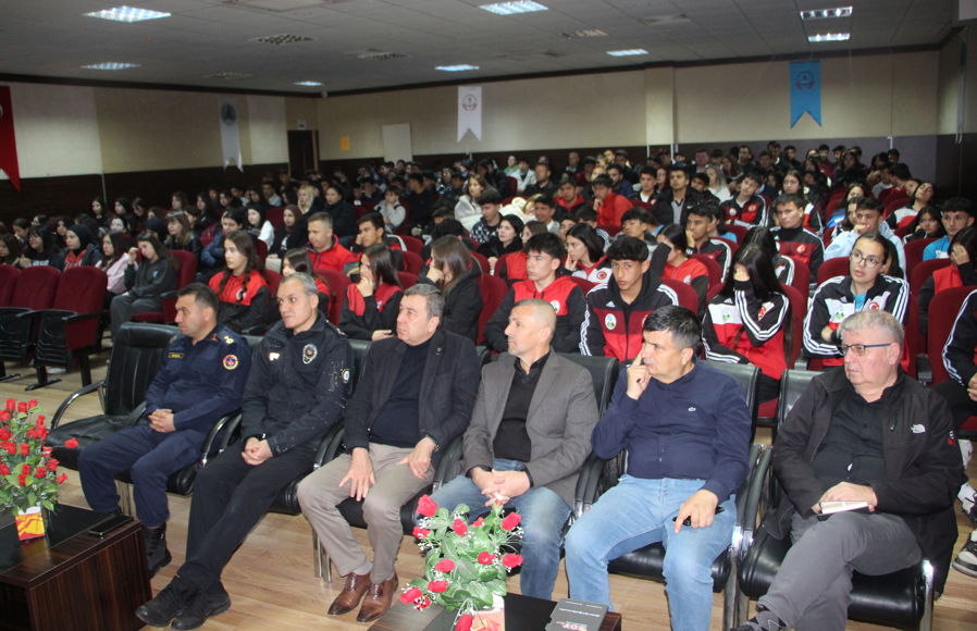 Antalya'nın Kumluca ilçesinde Cumhuriyet Başsavcısı İlker Çağatay Aydın tarafından öğrencilere yönelik IBAN dolandırıcılığı, cep telefonu ve sosyal medya üzerinden yapılan dolandırıcılıklar hakkında bilgi verildi.