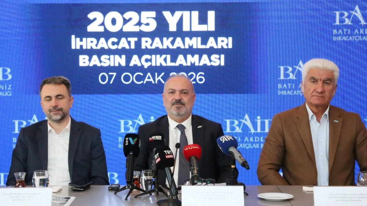 haberimizvar.net- BAİB'in 2025 yılı ihracat verilerinin açıklandığı basın toplantısında BAİB Yönetim Kurulu Başkanı Ümit Mirza Çavuşoğlu'nun rahatsızlanması sonrasında toplantıyı devam ettiren BAİB Başkan Yardımcısı Mustafa Küçükyaman, 2025 yılı verileri ve 2026 yılı hedeflerini açıkladı. Batı Akdeniz ihracatının 2025 yılında yüzde 3,96'lık artışla 2 milyar 743 milyon dolara ulaştığını belirten Küçükyaman, sektörlere göre ihracat verdilerini şöyle sıraladı: