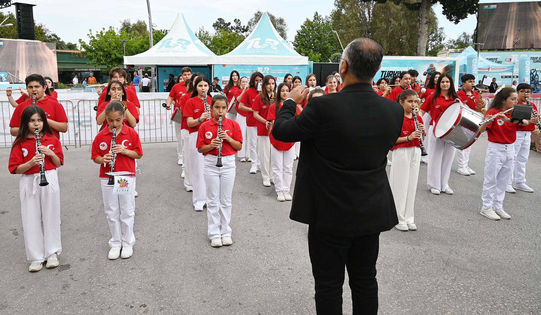 Kemer Belediye Başkanı Necati Topaloğlu öncülüğünde kurulan Kemer Belediyesi Gençlik Bando ve Orkestrası, yarışların bitiş noktasında mini bir konser verdi.