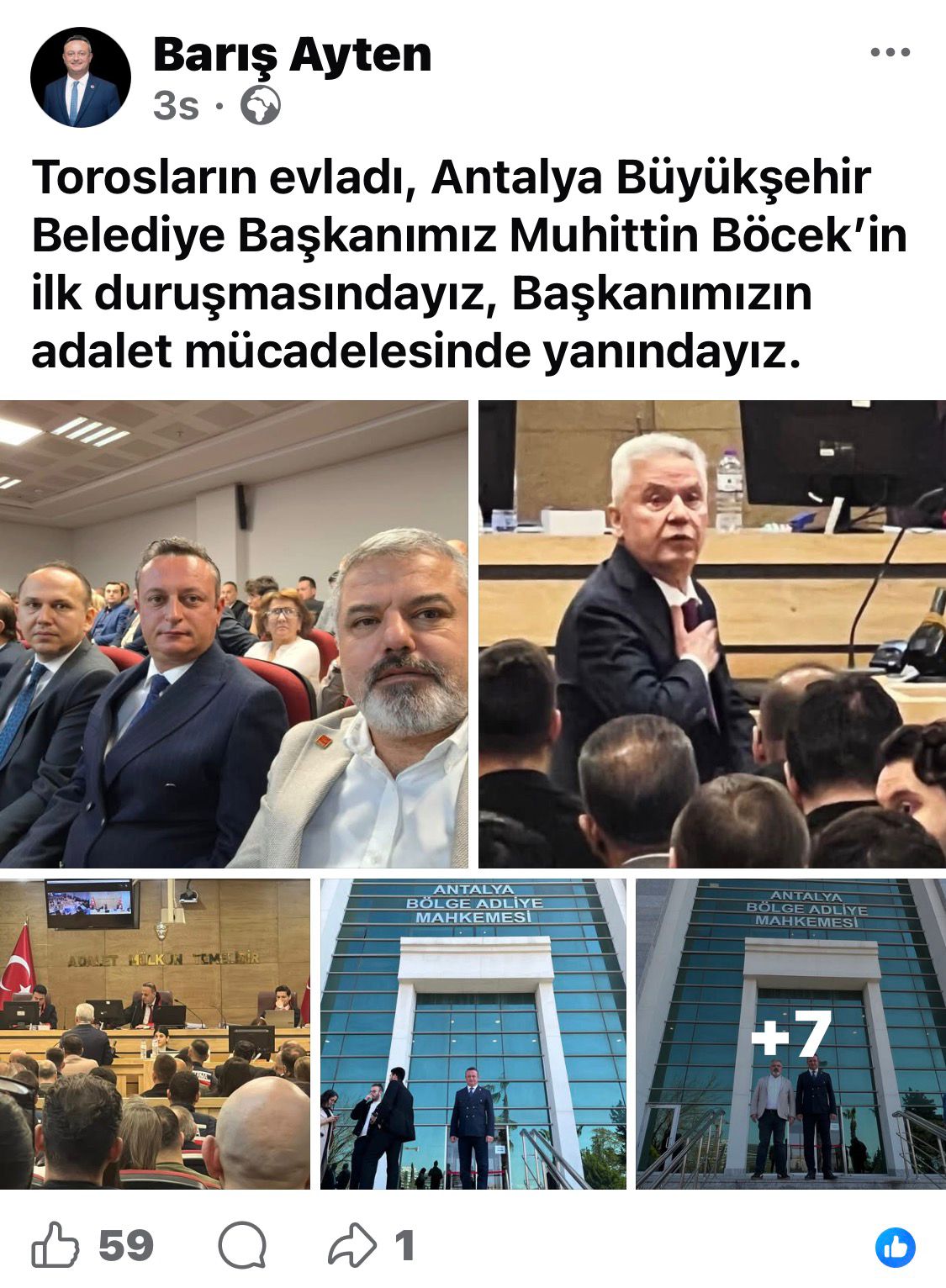 CHP Burdur İl Başkanı Barış Ayten sosyal medya hesabından "Torosların evladı Antalya Büyükşehir Belediye Başkanımız Muhittin Böcek'in ilk duruşmasındayız, Başkanımızın adalet mücadelesinde yanındayız" notuyla duruşma salonundan çektirdiği fotoğraflarla paylaşım yaptıktan sonra duruşmada ilk ifadeyi veren tutuklu Muhittin Böcek'in savunması devam ederken salonu terk etti. Yine kırmızı plakalı 'Burdur CHP' plakalı aracına binerek, Konyaaltı'nda hizmet veren Çamlık Restaurant'a geçen İl Başkanı Ayten ve beraberindekiler çilingir sofrası kurarak, mangal keyfi yaptı. CHP'lilere Antalya yaşayan Burdurlular da eşlik etti.