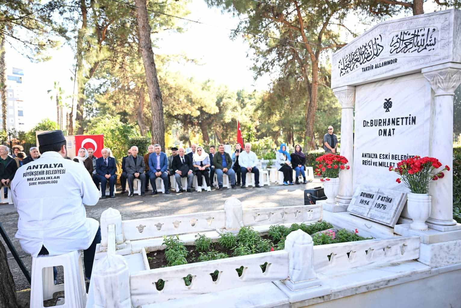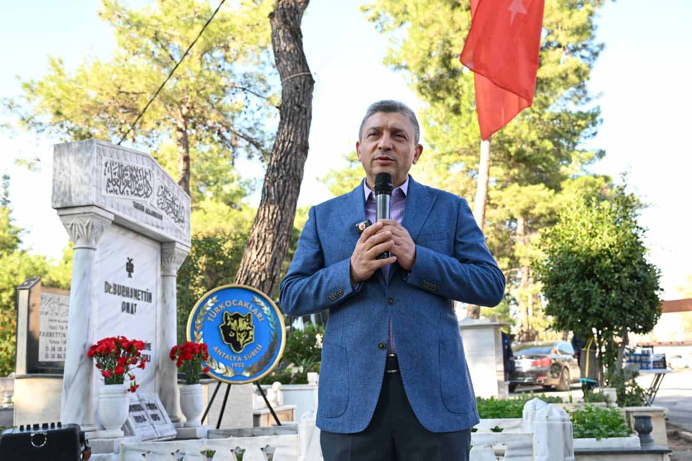 haberimizvar.net- Antalya Türk Ocağı kurucusu, eski Antalya Belediye Başkanı, 9, 10 ve 11'inci dönem Antalya Milletvekili Dr. Burhanettin Onat, vefatının 49'uncu yıl dönümünde kabri başında düzenlenen törenle anıldı. Türk Ocakları Antalya Şubesi tarafından Uncalı Mezarlığı’nda düzenlenen programa; Antalya Valisi Hulusi Şahin, Türk Ocakları Antalya Şubesi Başkanı Abdullah Uysal, Dr. Burhanettin Onat’ın torunu Mehmet Zaim, Türk Ocağı üyeleri, STK temsilcileri ve vatandaşlar katıldı.